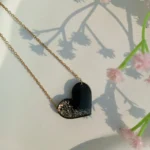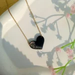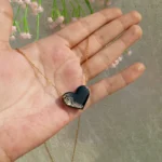 Handcrafted black resin heart pendant with golden glitter accents, paired with a stainless steel chain for a timeless and elegant look.