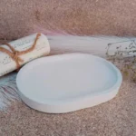 A sleek small oval tray made of ceramic and plaster of Paris, perfect for home décor and organizing small items, vases, candles, or jewelry with elegance.