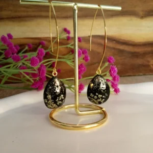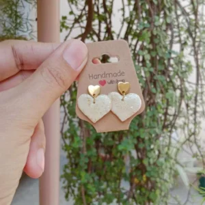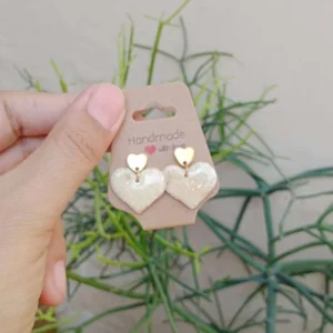 Heart Shaped Clay Earrings With Golden Foil