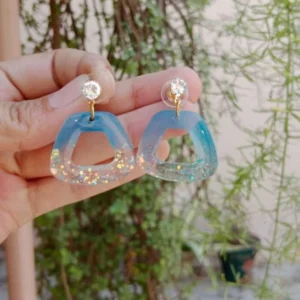 Shiny Torquoise Resin Earrings With Blend Of Glitter