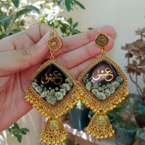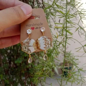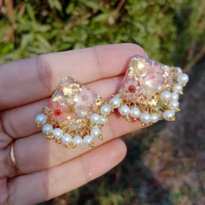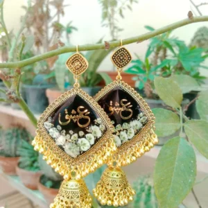 Golden Diamond Resin Jhumka with White Baby Breaths