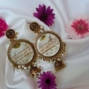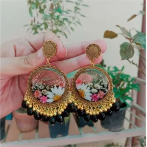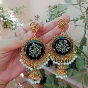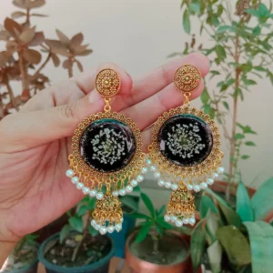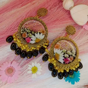 Round Poetry Jhumka with White Pressed Flower