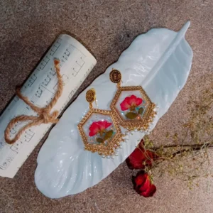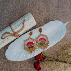 Hexagonal Red Rose Bud Glitter Jhumka